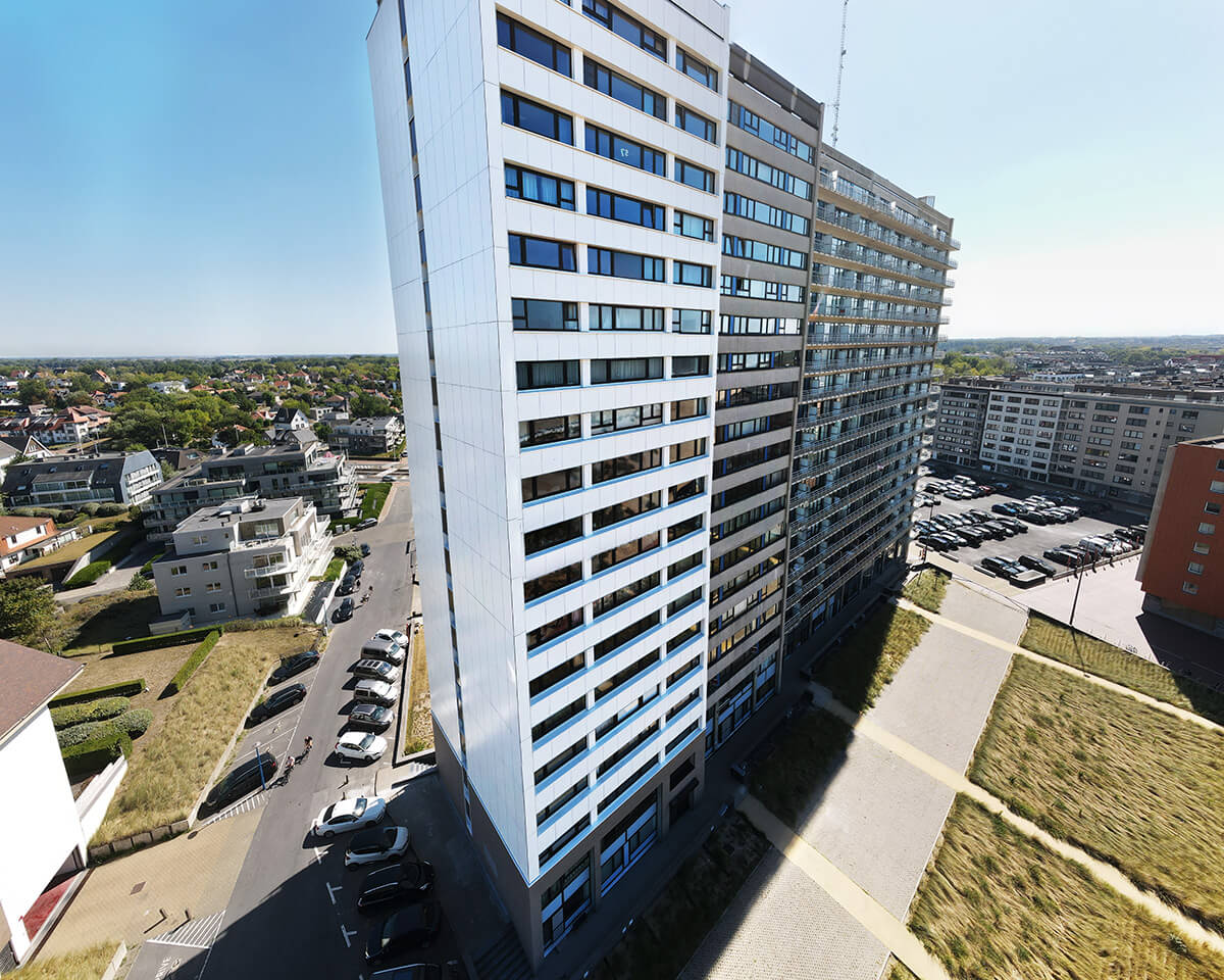 Gelaste dagkantoplossing tot 14,73 meter voor hoogbouwrenovatie in maritiem klimaat.